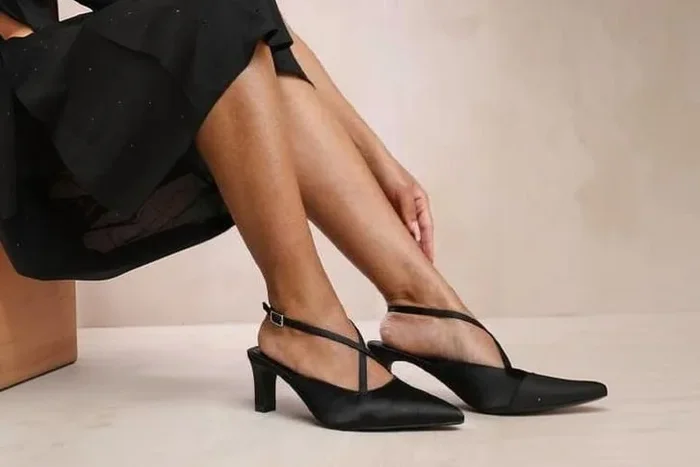Women’s Serna Pointed Toe Low Block Heel Dress Shoes with Cross Over Ankle Strap