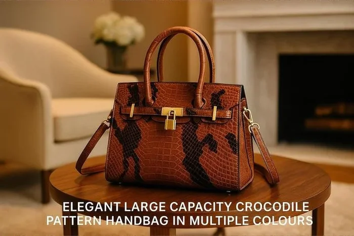 Women’s Shiny Crocodile Pattern Large PU Handbag – 6 Colours