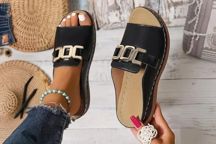 Women’s Slip-On PU Buckle Wedge Sandals – Casual Summer Comfort, 7 Sizes, 5 Colours