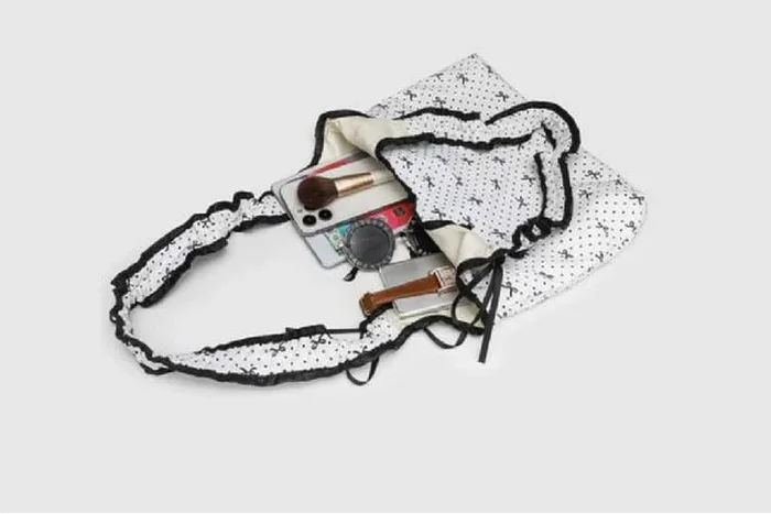 Canvas Bow Polka Dot Shoulder Bag – Adjustable Strap, Large Capacity, Lightweight Tote