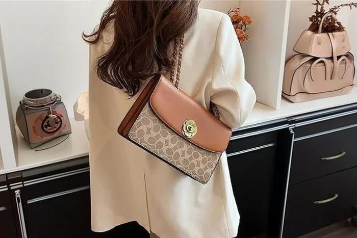 Classic Camellia Floral Vegan Leather Crossbody Chain Bag – Adjustable Strap, Multiple Compartments, 16cm x 18cm