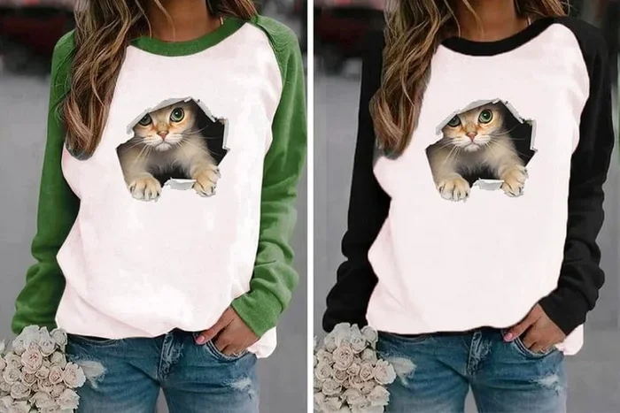 Cozy Cat Print Fleece Sweatshirt – Embrace Whiskered Warmth!