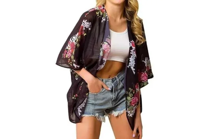 Enchanting Floral Beach Kaftan: Black & Pink Lily Delight