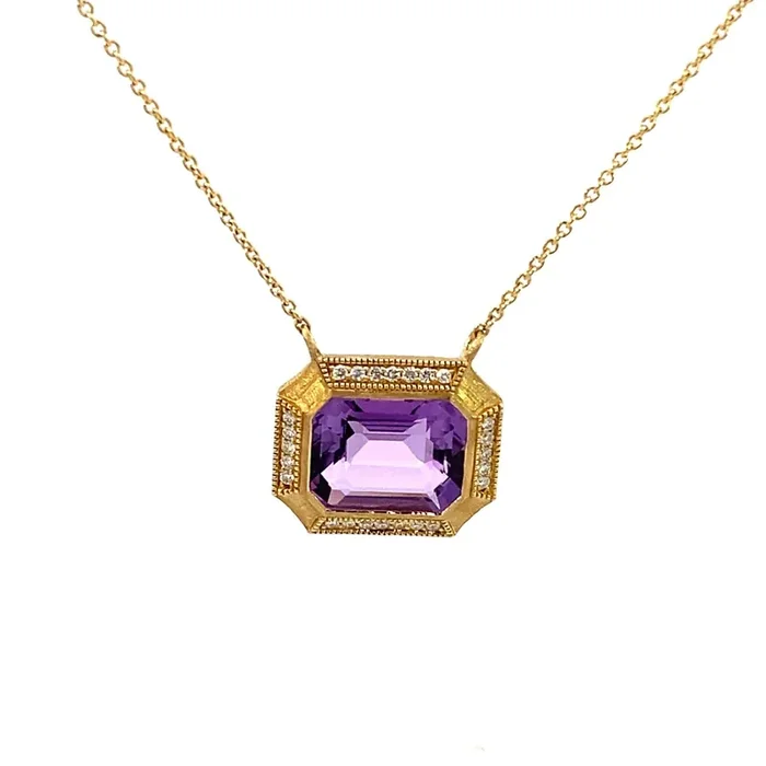 14k Yellow Gold Amethyst & Diamonds Necklace – Bassali
