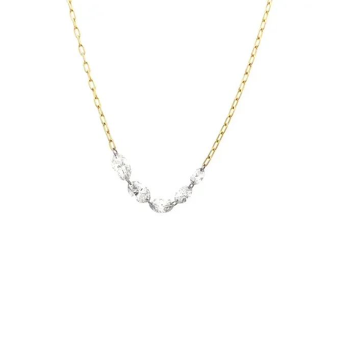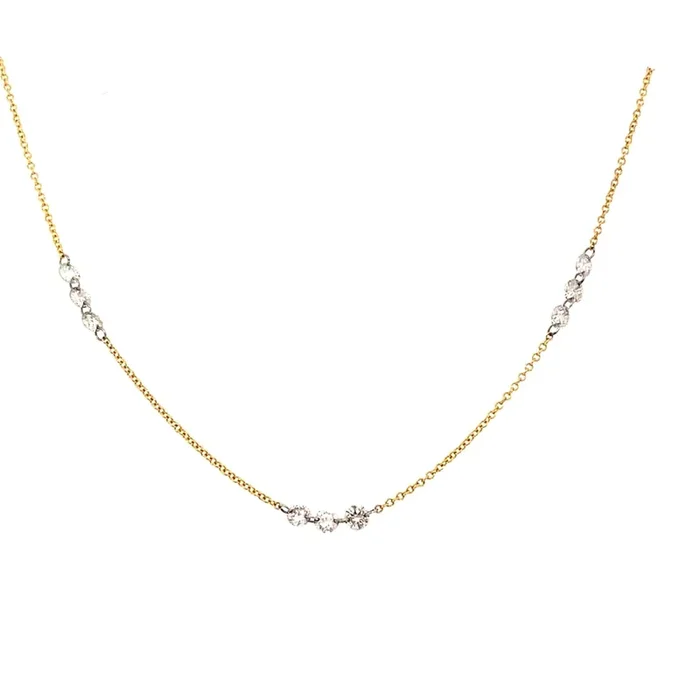 14k Yellow Gold Necklace with 3 sections of 3 Drilled Diamonds – Reflections Diamonds