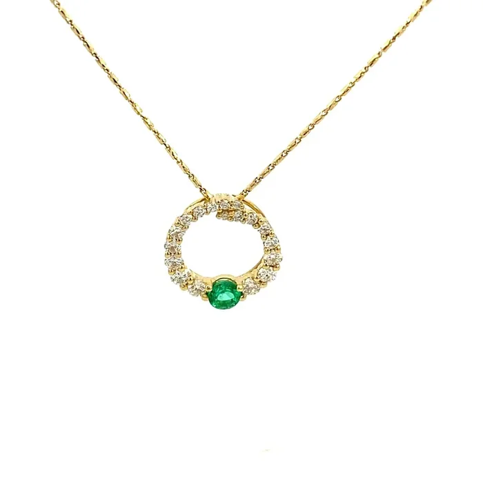 14k Yellow Gold Necklace with Diamond and Emerald – Nemati