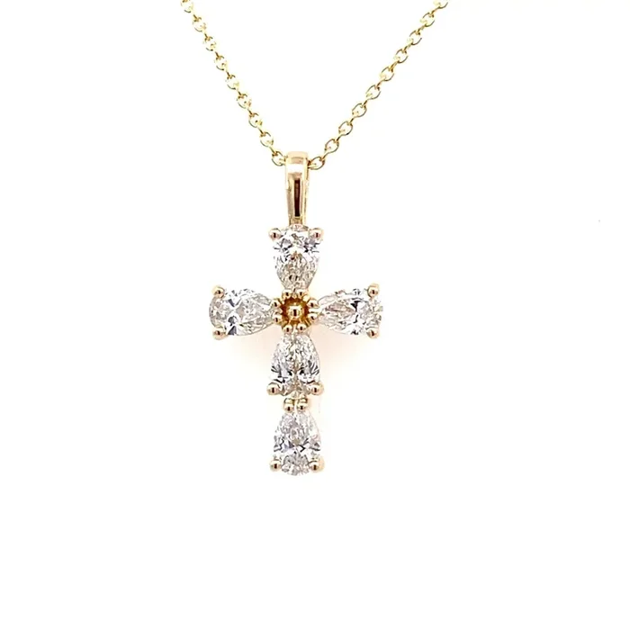 14K Yellow Gold Necklace with LAB Diamond Cross – Gaines Jewelers Exclusive