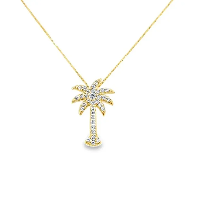 14k Yellow Gold Palm Tree Diamond Pendant Necklace – Nemati