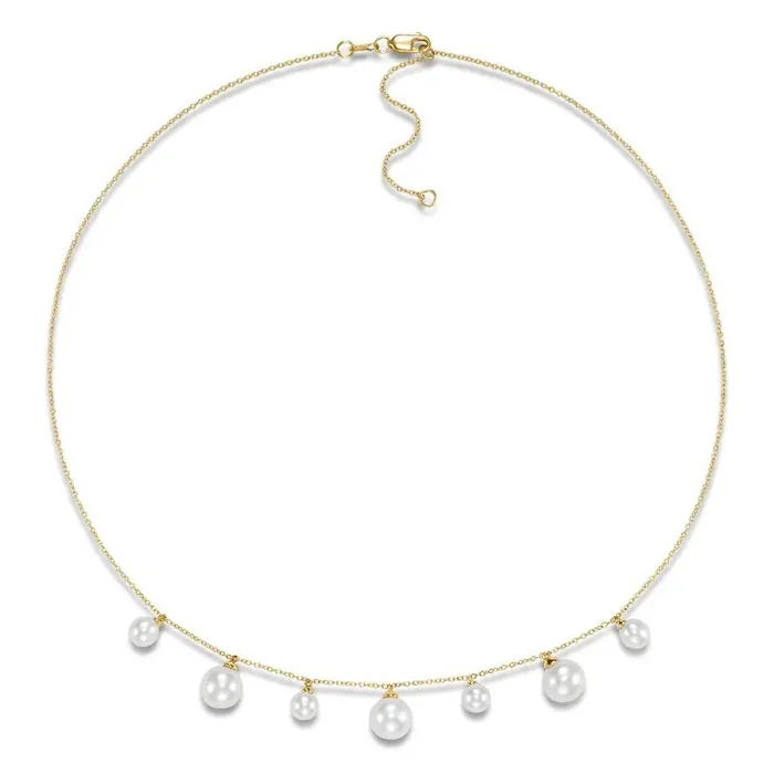 14KT Yellow Gold 5-8.5MM Freshwater Pearl Necklace with Drop Pearl-mastoloni