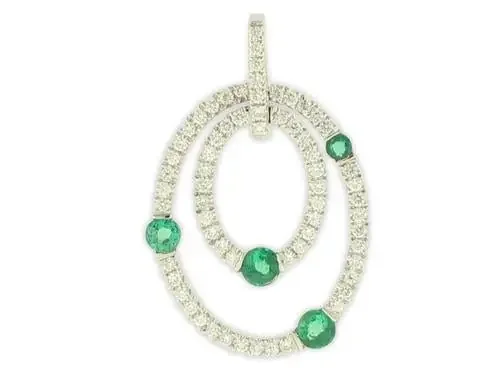 18kt White Gold Emerald and Diamond Double Oval Loop Necklace – Nemati