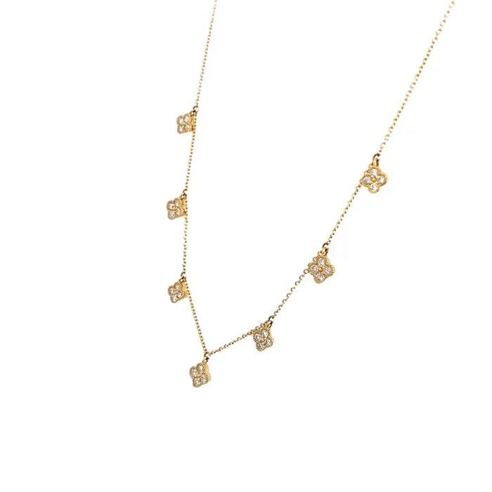 7 Cloverleaf Diamond Dangles 14kt Yellow Gold Necklace – Raymond Mazza