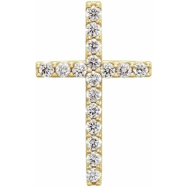 Necklace cross set with diamonds, petite & thin 14kt yellow gold