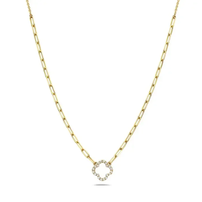 Necklace diamond trefoil on paperclip chain-Bassali