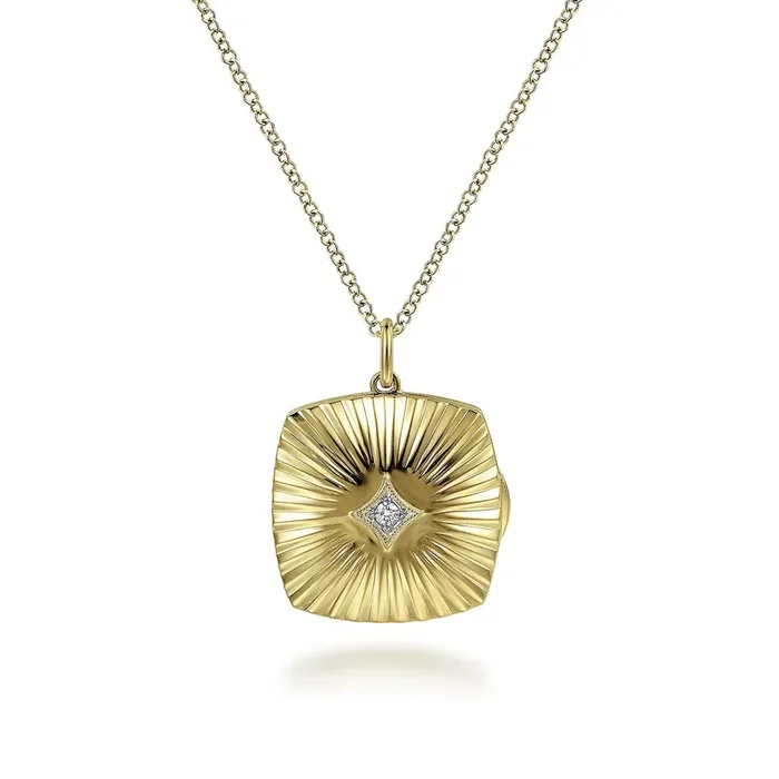 Necklace Pendant diamond locket square 14kt yg