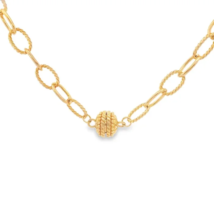 Necklace-alternating smooth & twisted links, magnetic clasp in Forever Gold