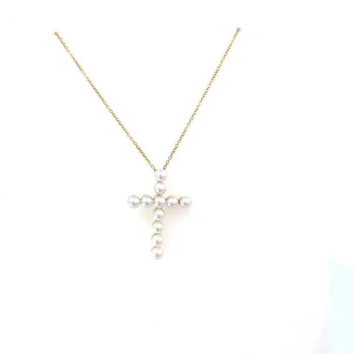 Pearl Cross Necklace 18kt Yellow Gold – Matoloni