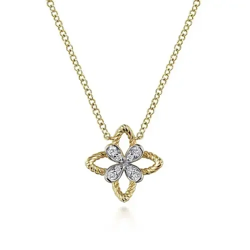 Pendant diamond cluster in braid bezel 14kt yellow gold