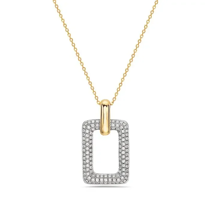 Pendant open rectangle, white gold, with diamonds on yellow gold chain-Bassali