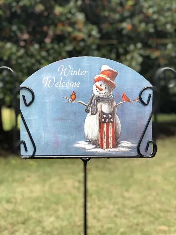 Americana Snowman Garden Sign