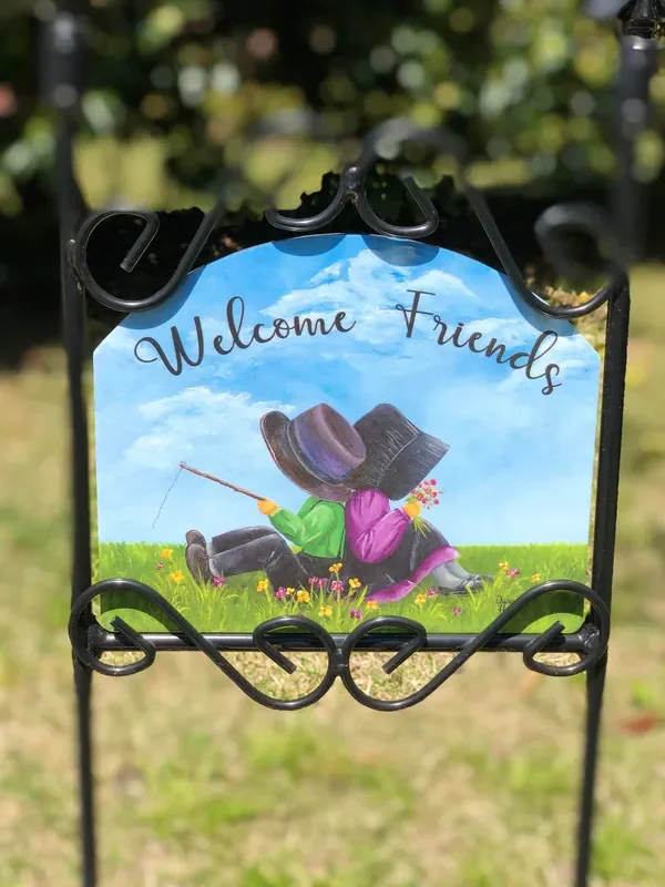 Amish Couple Welcome Garden Sign