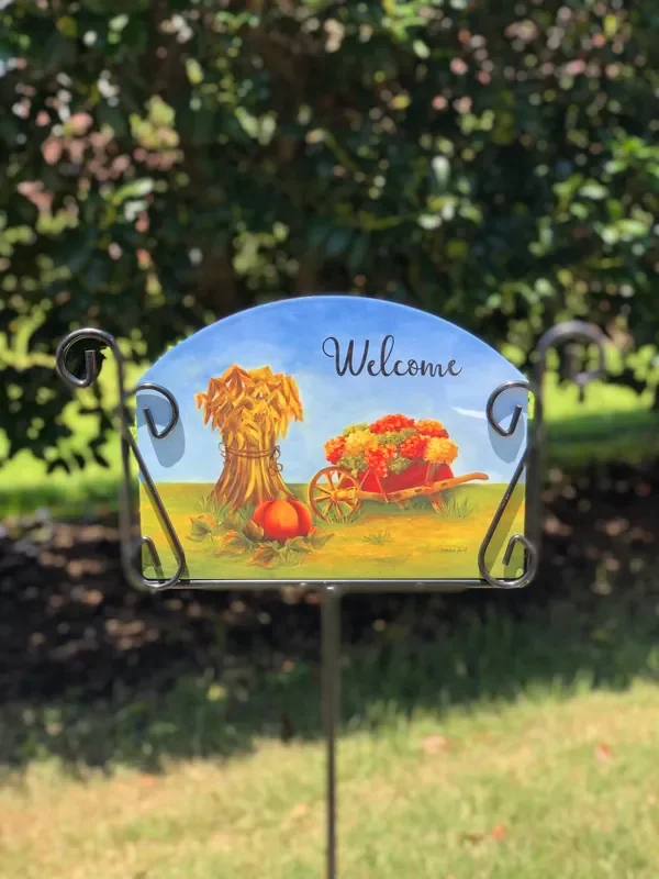 Autumn Wheelbarrow Welcome Garden Sign