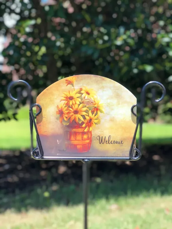 Barrel of Sunflowers Welcome Garden Sign
