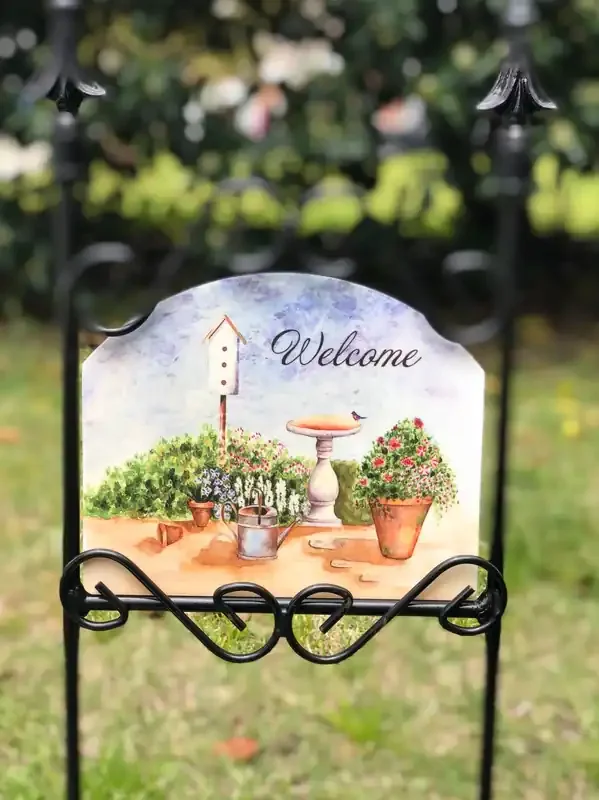 Bachelor Buttons Welcome Garden Sign