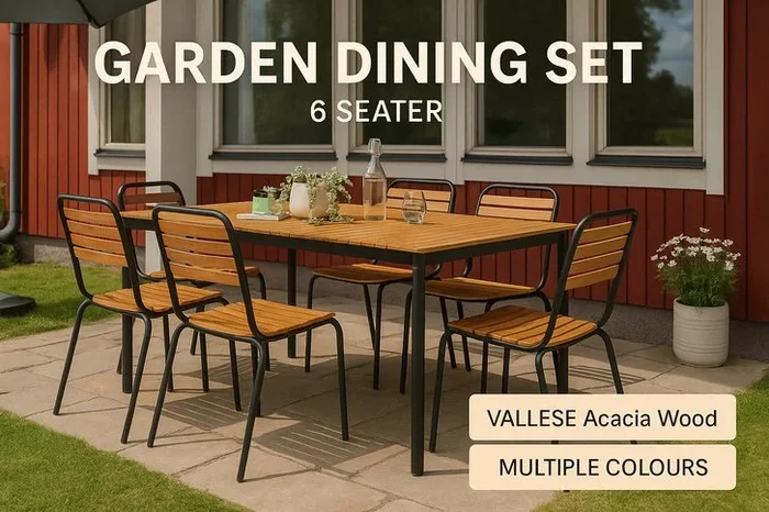 Acacia Wood 6-Seater Modern Garden Dining Set – Metal Frame