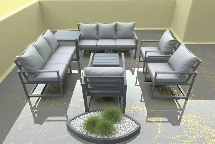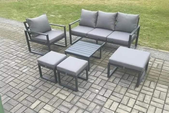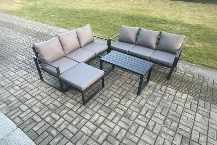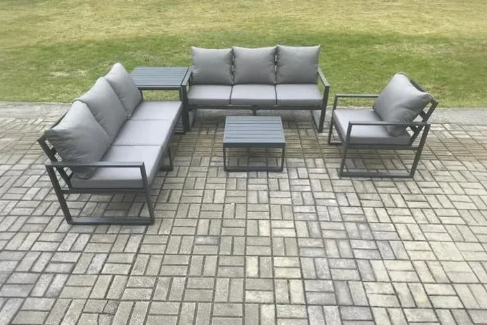 Aluminium 7-Seater Outdoor Sofa Set – Weather-Resistant Modern Lounge