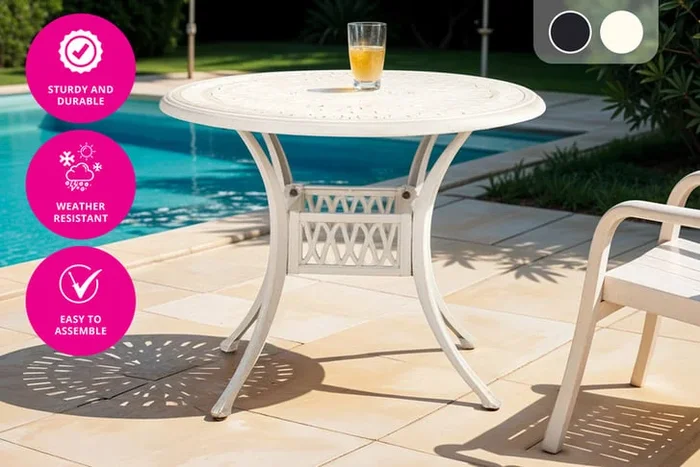 Aluminium Vintage Bistro Table – Weather-Resistant, 4-Seater, 90cm Round