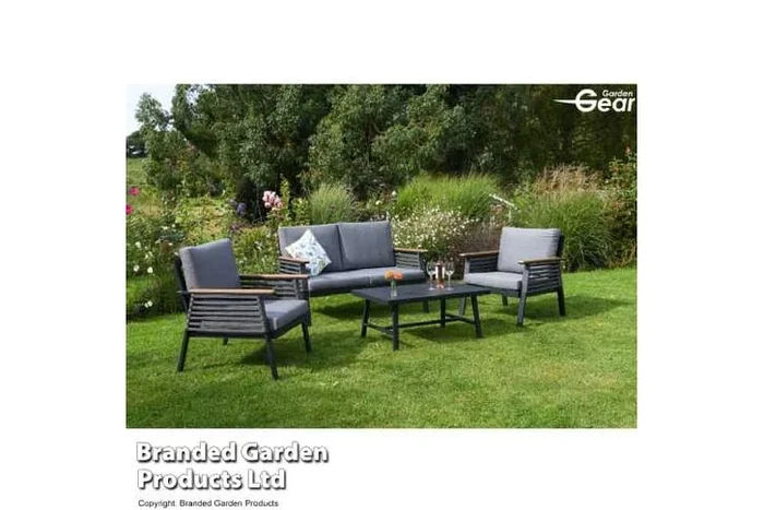 Aluminium Weather-Resistant Outdoor Lounge Set with Grey Cushions – 4-Seater Modern Garden Furniture