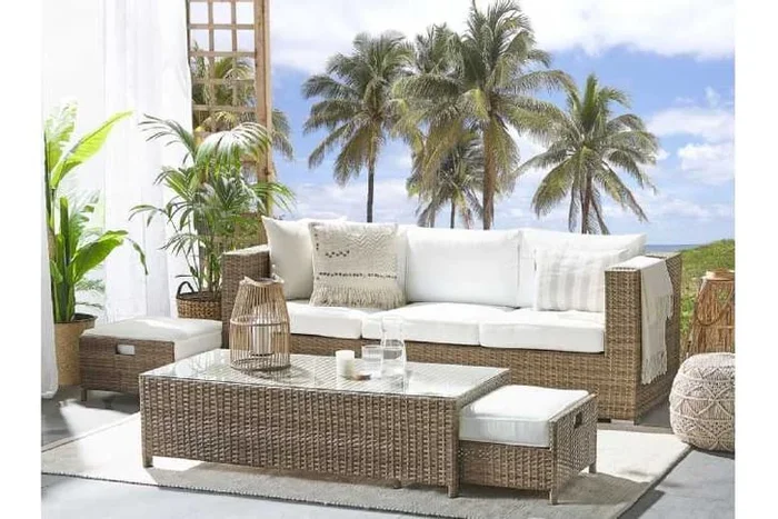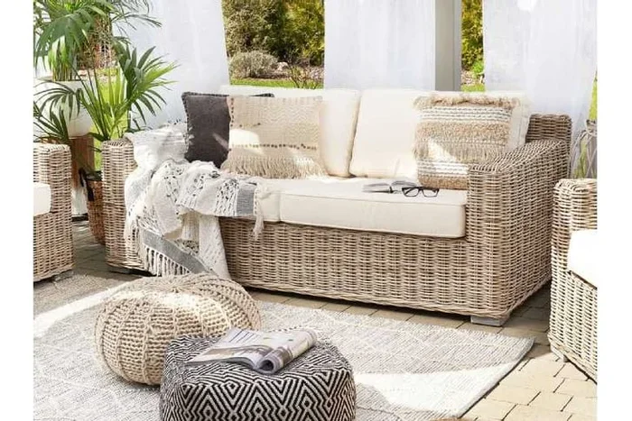 ARDEA Modern 2-Seater Handwoven Rattan Garden Sofa – Light Brown, Weather-Resistant Outdoor Seating