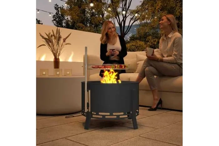 58cm Steel Fire Pit Grill & Log Burner – Portable Outdoor BBQ Heater