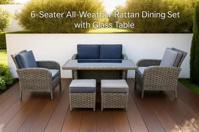 6-Seater All-Weather Rattan Garden Furniture Set with Stunning Glass Table!