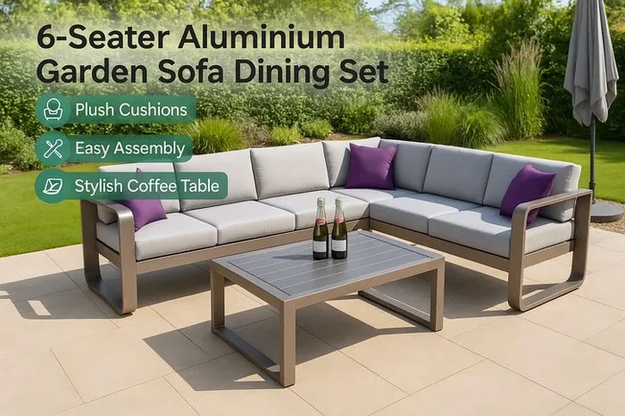 6-Seater Luxurious Aluminium Outdoor Fairy Sofa Dining Set