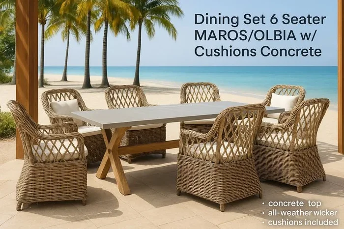 6-Seater Weather-Resistant Rattan Dining Set with Fibre Cement Table – Modern Outdoor Garden Furniture