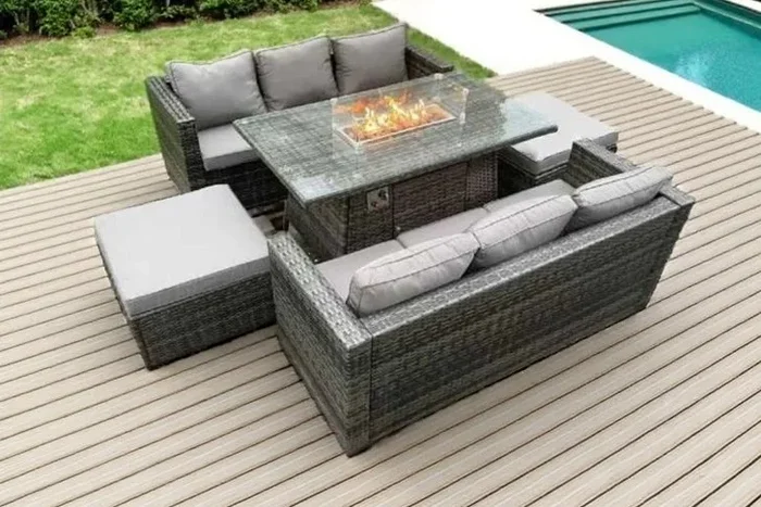 Ultimate 8-Seater Rattan Garden Set with Cozy Firepit Table