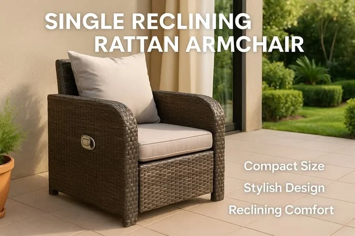 Ultimate Comfort Reclining Garden Rattan Armchair with Plush Cushion