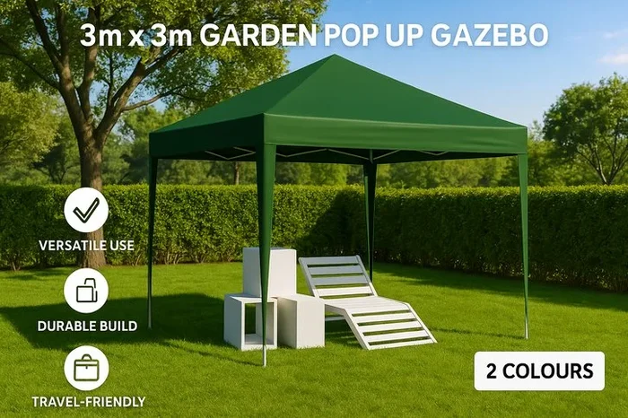 Weather-Resistant Steel Pop-Up Garden Gazebo 3m x 3m – Grey or Green