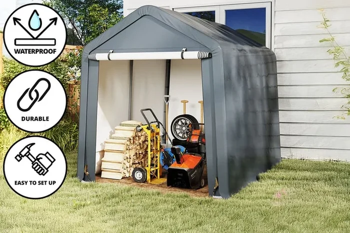 Weatherproof Outdoor Storage Shed with Roll-up Zipper Door – Grey