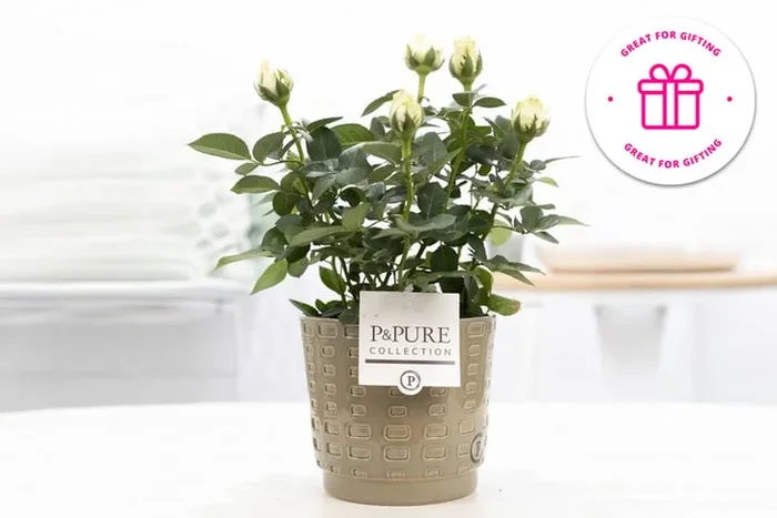 White Rose Flowering Houseplant in Decorative Pot – Indoor Blooming Plant