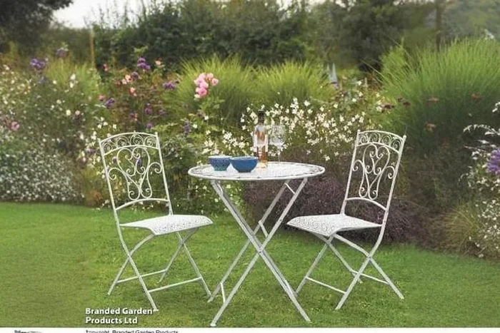 White Wrought Iron Foldable Garden Bistro Set