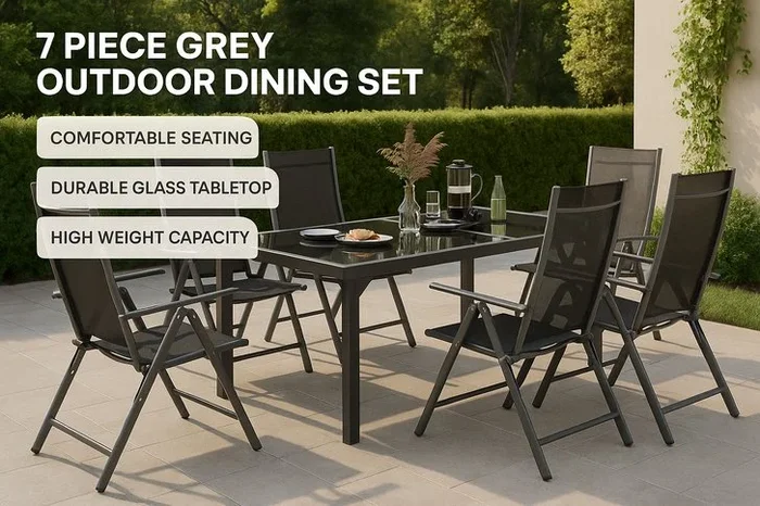 7 Piece Grey Outdoor Dining Set – Weather-Resistant & Foldable