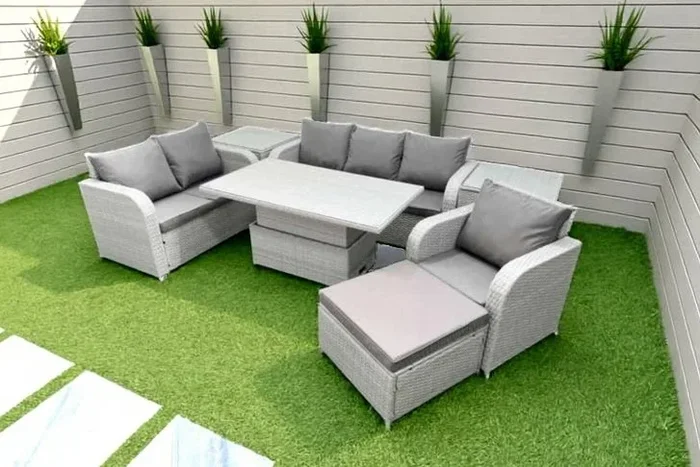 7-Seater Weather-Resistant Rattan Garden Lounge & Dining Set with Adjustable Table