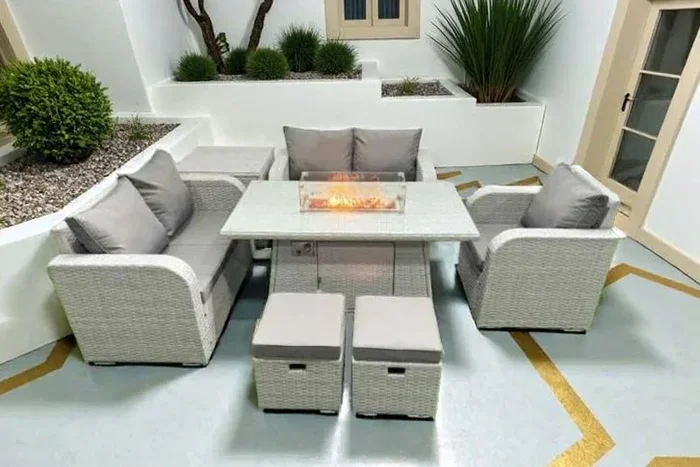 7-Seater Rattan Recliner Sofa Firepit Set – Weather-Resistant Outdoor Lounge