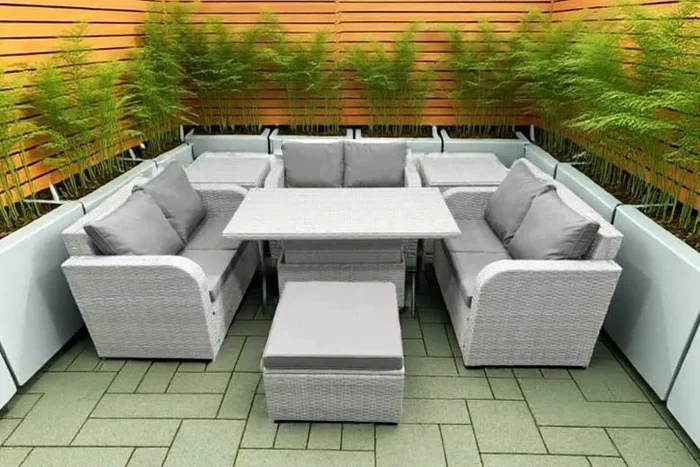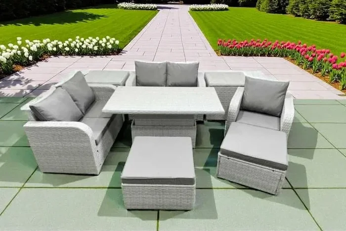7-Seater Weather-Resistant Rattan Recliner Sofa Set with Adjustable Table – Modern Garden Dining & Lounge