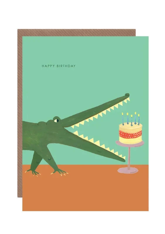 Crocodile With Cake Birthday Greetings Card