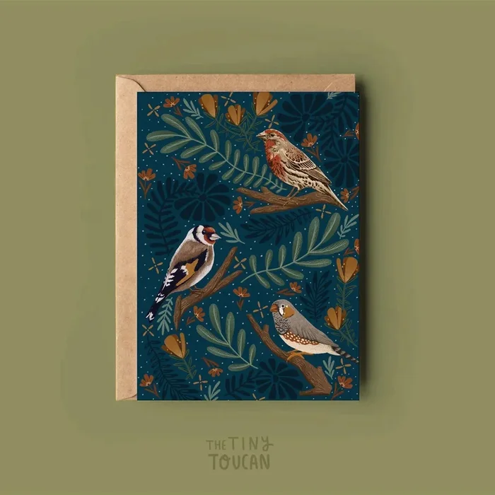 Finches Christmas Greetings Card