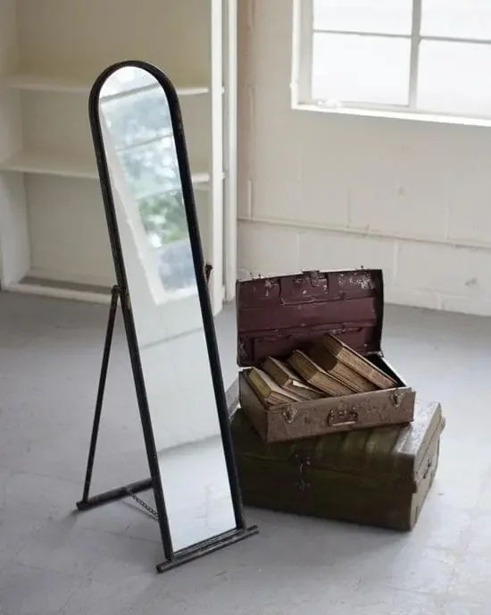 Floor Mirror with Metal Frame and Stand