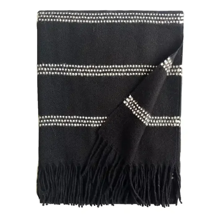 Treble Black with White Dot Stripes Baby Alpaca Throw